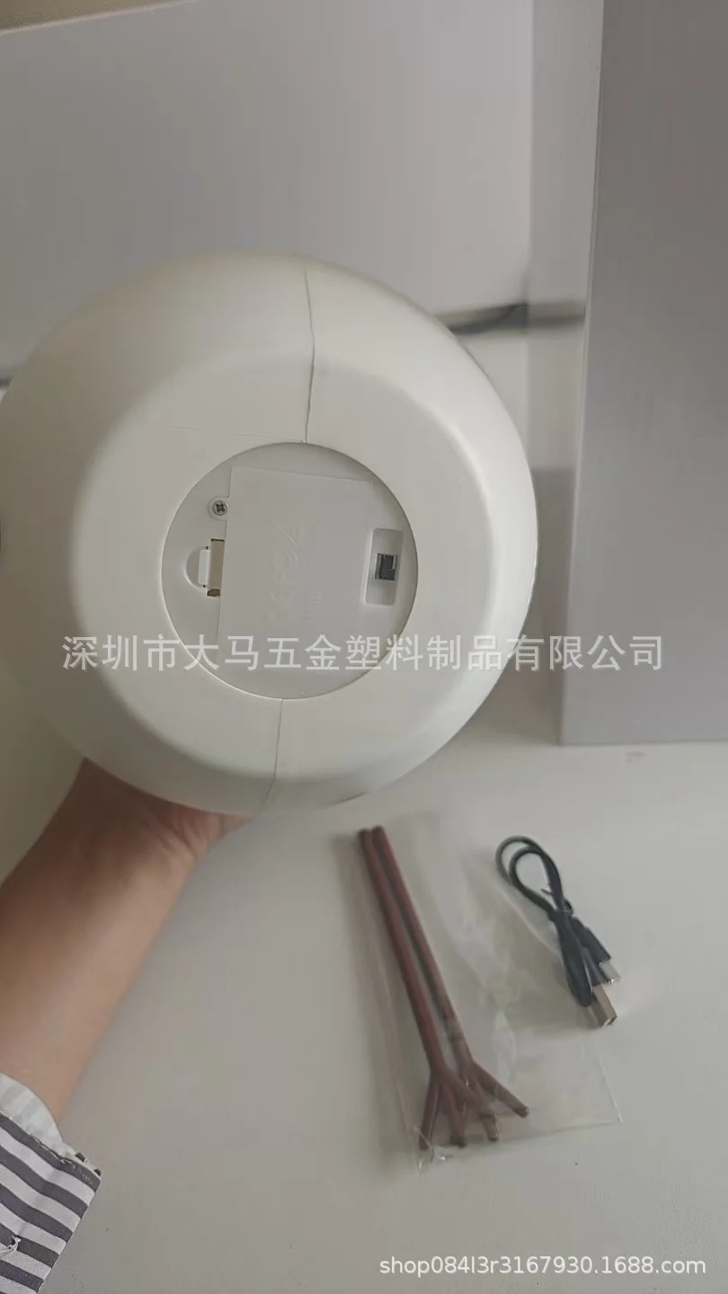 The product ships without batteries, can be connected to USB, and can use dry batteries (3 AA batteries)