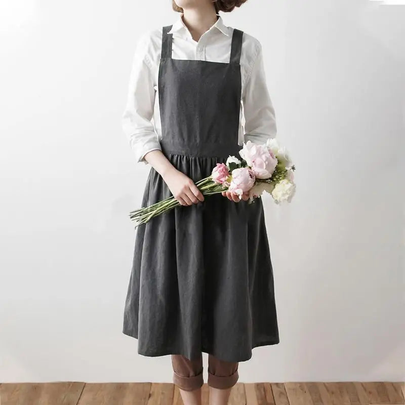 Nordic Simple Florist Apron Cotton Linen Gardening Coffee Shops Kitchen Aprons For Cooking Baking Restaurant Apron Pinafore
