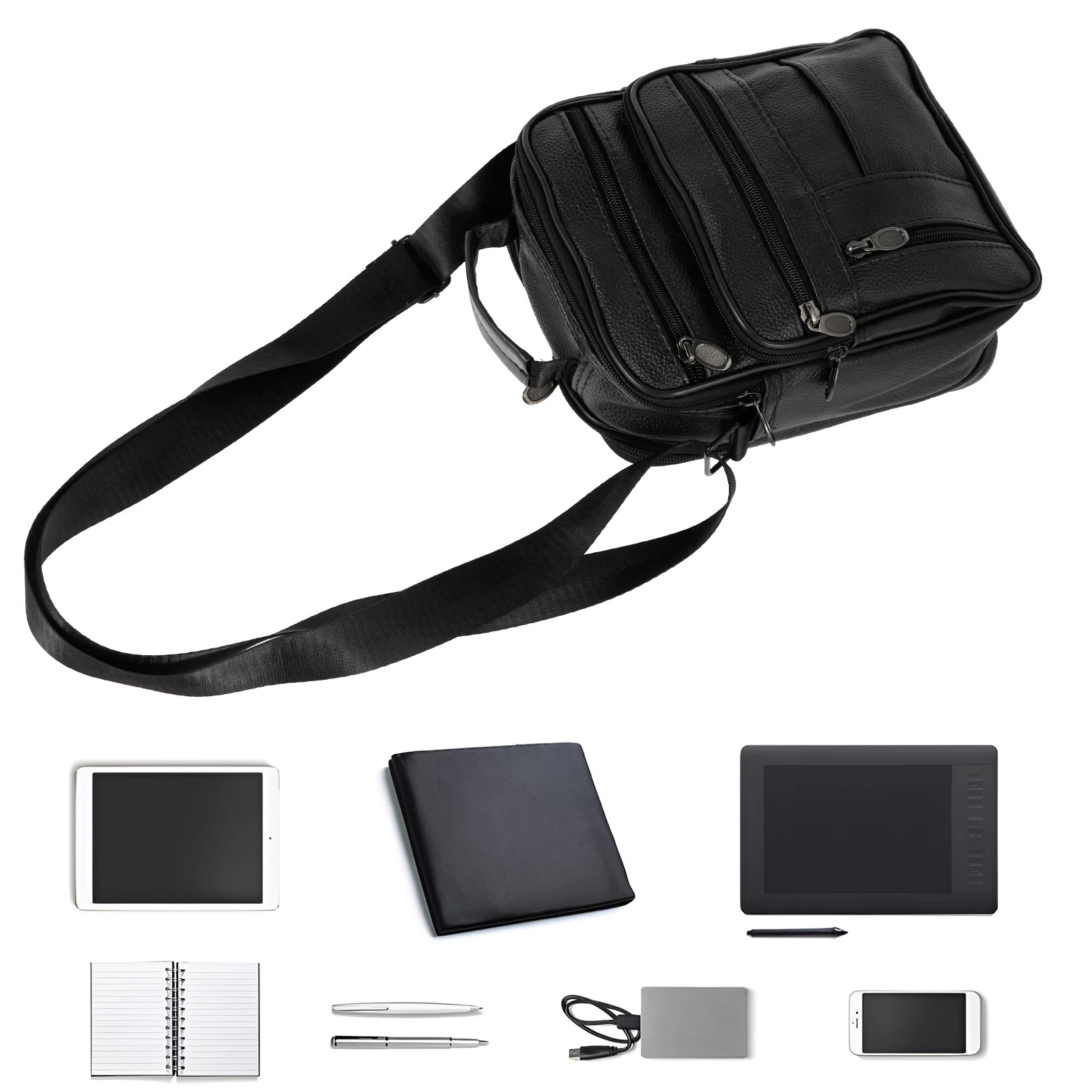 2. Structure: 1 large internal compartment + 1 zipper wall pocket + 1 front magnetic snap pocket + 1 zipper pocket.