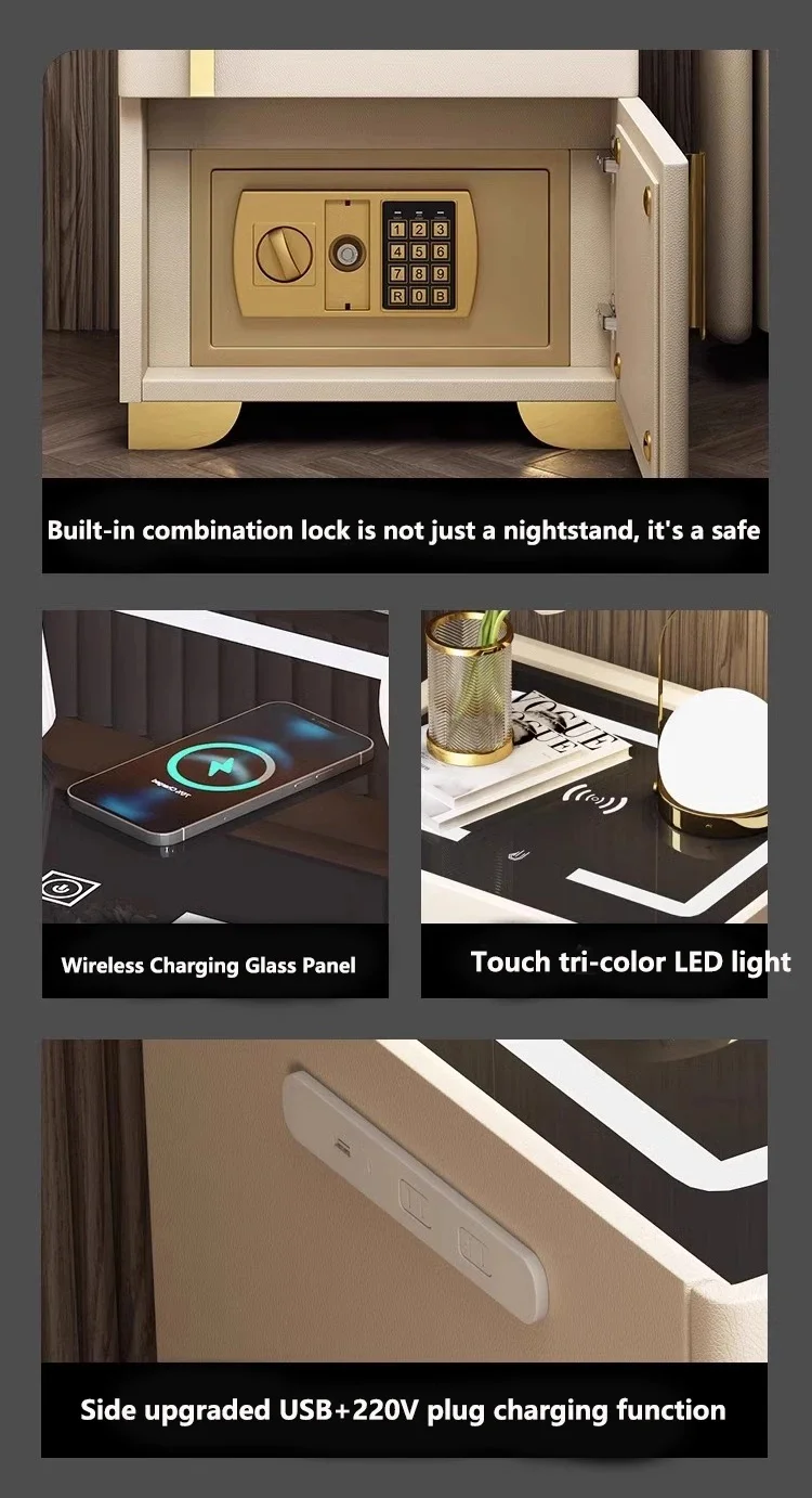 Committed to integrating practicality, intelligence, and security into modern home life, our flagship product—the intelligent multifunctional bedside cabinet—combines multiple user-centric features to meet the diverse needs of global consumers. Beyond its basic role as a bedside storage solution, it is equipped with smart functionalities such as USB charging ports, wireless charging pads, and adjustable LED reading lights, adding convenience to daily routines. What sets it apart is the integrated safe, which provides a secure space for valuables like jewelry, documents, and electronic devices, ensuring peace of mind for users.