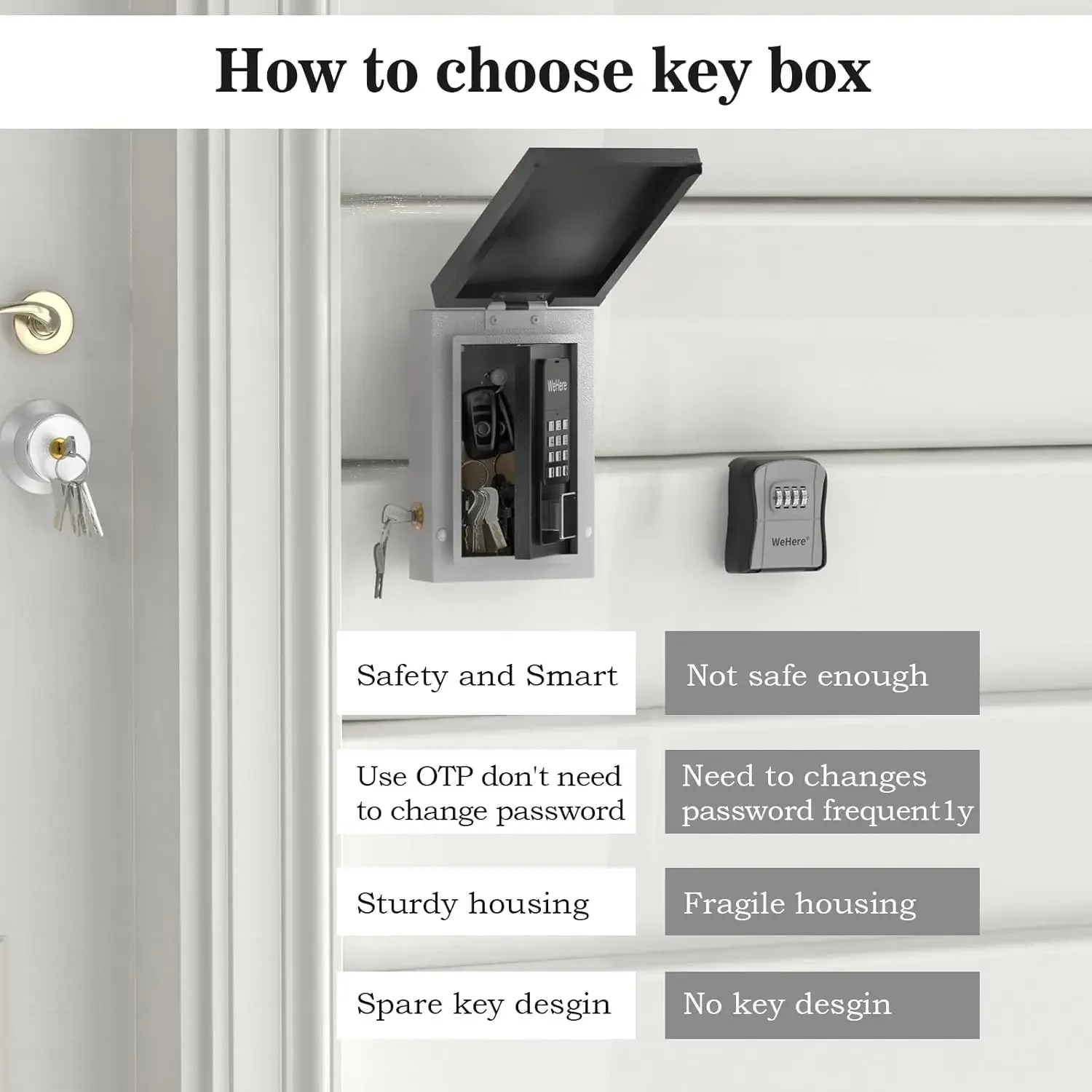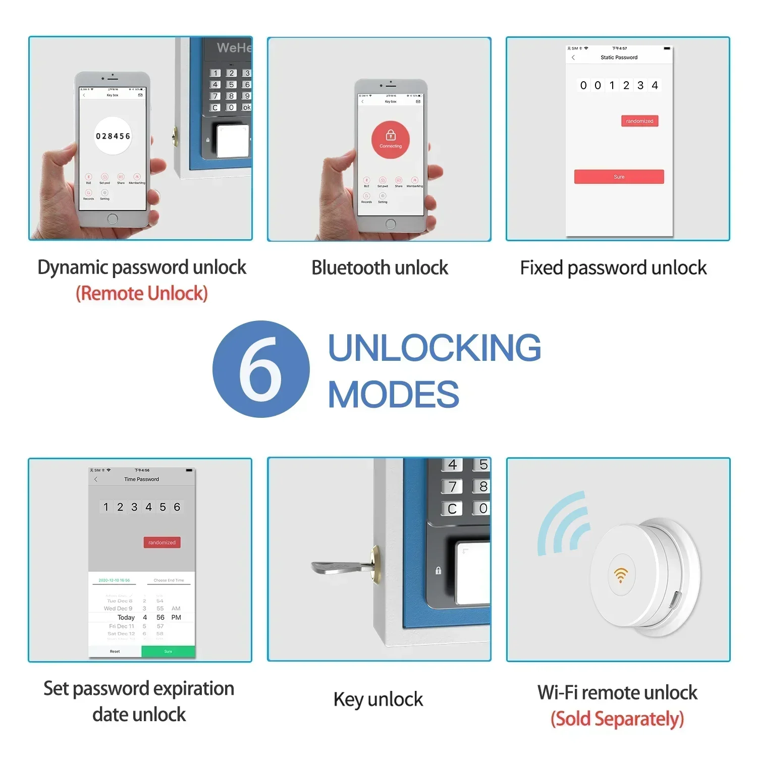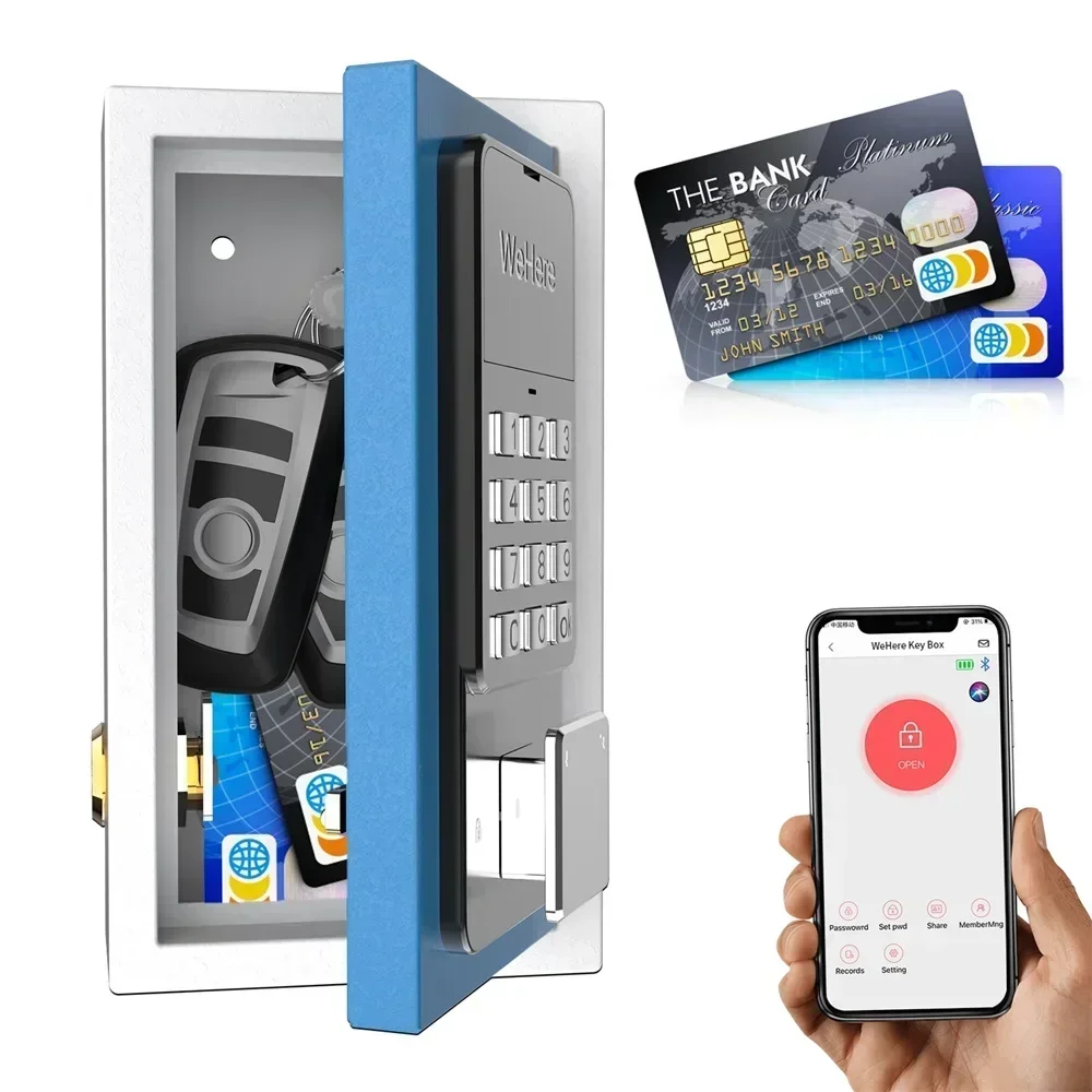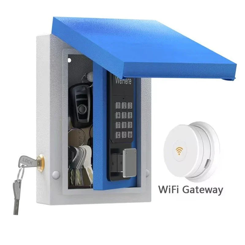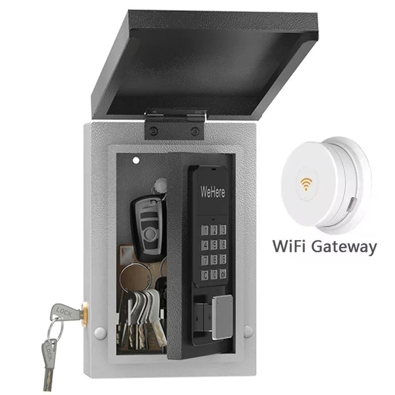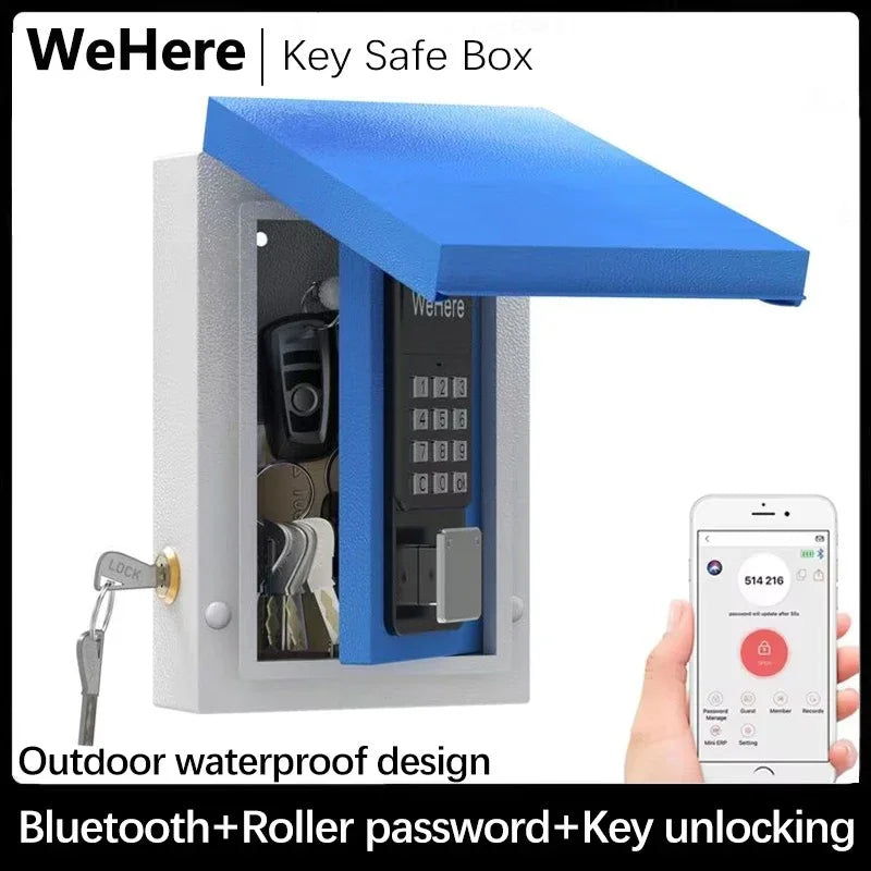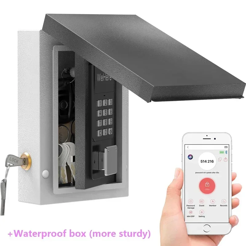 Multiple Unlocking Methods: Access to the lockbox via the included key, Bluetooth via the app, remote WiFi via the WeHere W100 bridge (bridge sold separately), or via a password set in the app; flexible unlocking options to meet different requirements