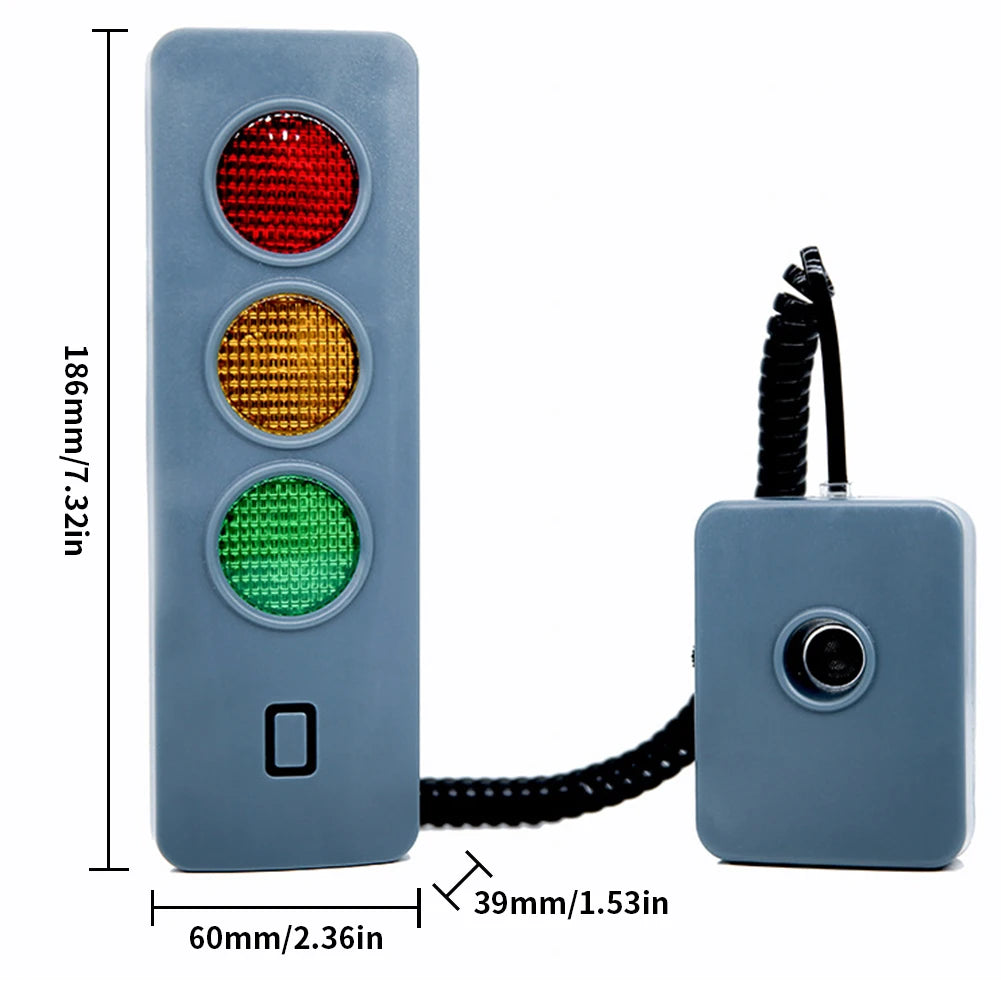 2.4 metres from the green light prompt, 0.5-1.4 metres from the yellow light prompt, 0.45 metres from the red light and alarm prompt.
